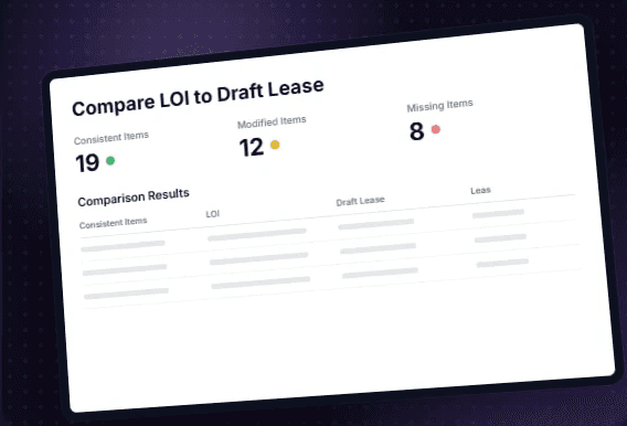 Review draft leases against client standards in minutes. Surface deviations, compare against prior agreements, and generate pre- and post-execution summaries — so associates focus on judgment calls, not redlining.
