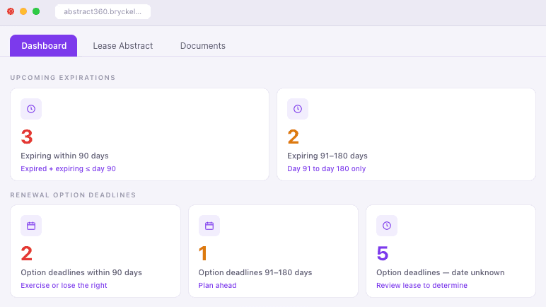 AI inside your tools solves the blank-page problem for every employee. But it doesn't turn your lease portfolio into a queryable asset, and it doesn't catch risk across hundreds of agreements in flight. That's what Abstract 360 was built for — a containerized system deployed inside your environment that handles deduplication, abstraction, and expert validation at institutional scale, so your entire portfolio becomes structured, searchable intelligence.