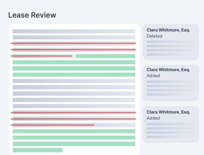 Complete the first pass of lease review in-house, generate detailed review reports to share with external counsel, or invite them to collaborate directly. Surgical redlining is currently in beta.